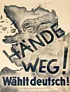 Mit dem Wunsch einer Grenzverschiebung und dem Erstarken der dänischen Minderheit regte sich auch der Widerstand der deutschen Seite. Der Konflikt zwischen Deutsch und Dänisch entflammte in Südschleswig wieder. Davon zeugen auch die beiden abgebildeten Plakate. Diese wurden zur Kommunalwahl 1948 gedruckt. Sie stammen von der „Deutschen Wahlgemeinschaft“. Dahinter steckten verschiedenen deutsche Grenzvereine, die keine Aussage dazu machten, welche Partei man wählen sollte, Hauptsache es war nicht der Südschleswigsche Wählerverband.