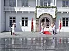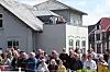 Mehrere Hundert Bürger waren vor dem Folkehjem erschienen, um die Königin zu sehen. Vom Balkon des Hauses gegenüber gab es den besten Blick.