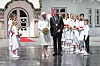 Die Königin zwischen den Kindern und – noch – in Begleitung von Bürgermeister Andresen