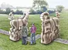 Die Künstler schaffen aus Baumstämmen ein skulpturelles Werk für den Ahlmannsparken.