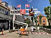 Die Vorbereitunge für den Besuch royalen Besuch laufen auf Hochtouren: Die Ehrenpforte, durch die Königin Margrethe am Sonntag fahren wird, steht bereits.