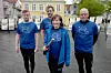 Die Sonderburger Stadträte Jesper Kock (l.) und Stephan Kleinschmidt (m.) flankieren gemeinsam mit DGI Vorstandsmitglied Claus Klaris die Landesvorsitzende Charlotte Bach Thomassen, die stolz die Jahrhundertstafette in der Hand trägt.