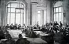 Bei den Friedensverhandlungen in Versailles und Paris nach dem Ersten Weltkrieg wurde die Volksabstimmung über den Verlauf der deutsch-dänischen Grenze beschlossen. Auf dem Bild nimmt eine Abordnung deutscher Politiker die Bedingungen entgegen.