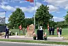 Bevor sich die royalen Gäste auf den Weg nach Hadersleben zu einem deutsch-dänischen Gottesdienst im Dom St. Marien machten, weihte Königin Margrethe am ehemaligen Grenzübergang ein neues Kunstwerk ein, das aus einer Skulptur und einem in den Boden eingelassenen Bronzeband besteht, das die ehemalige Grenze zwischen Deutschland und Dänemark markiert.