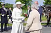 Die Blumen wurden Königin Margrethe von Eli Fredskilde überreicht. Die 82-Jährige ist die Tochter des Mädchens, das König Christian X. 1920 zu sich aufs Pferd holte.