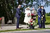 Königin Margrethe, Kronprinz Frederik und Prinz Christian zusammen mit Koldings Bürgermeister Jørn Pedersen vor dem frisch eingeweihten Bronze-Kunstwerk.