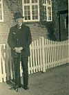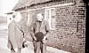 Nicolai Svendsen (links) hat laufend die Schulen im Amt Tondern besucht. Er legte dabei große Strecken zu Fuß zurück, wenn er Schulen wie die in Jerpstedt auf dem Foto aufgesucht hat. Er reiste per Bahn von Tondern bis Hoyer, von Tondern gab es einen Bus nach Ballum.
