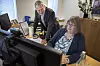 Verlagsmitarbeiterin Mary Tarp und Geschäftsführer Christian Andresen planen den Vertrieb der 14-täglichen Papierzeitung.Foto: Karin Riggelsen