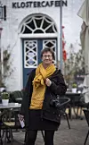 Monika Thomsen unterwegs mit Kamera und Block in der Tonderner Innenstadt