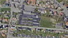 Die ehemalige Distriktschule in Scherrebek ist der Gebäudekomplex mit den dunklen Dächern in der Bildmitte.