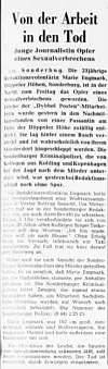 Die Meldung, die nur für die Kolleginnen und Kollegen vorgesehen war, formulierte er, als er 1966 bei einem Mordfall in Sonderburg (Sønderborg) recherchierte.