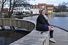 Brigitta Lassen auf der Holzpromenade am Ufer des Tonderner Mühlenteichs