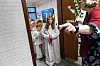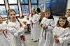 Die Kinder wurden für den Lucia-Umzug in Weiß gekleidet.