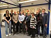 Fünf Personen stehen in einem Raum vor einer Wand mit gerahmten Dokumenten und blicken in die Kamera.