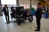 Das Ford T-Modell hat noch Holzspeichen an den Rädern. Eine Kupplung gab es damals noch nicht. Ausbilder Johannes Hansen (r.) ist fasziniert von dem Stück Technikgeschichte.