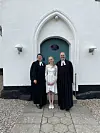 Konfirmandin Emma Lemke mit Pastorin Astrid Kramer und Pastor Ole Kramer