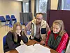 Es geht erstaunlich ruhig zu in der Mensa der DPA (Deutsche Privatschule Apenrade). In insgesamt vier Dreiergruppen hört man konzentriertes Murmeln. Die Schülerinnen und Schüler sitzen an Tischen, auf denen jede Menge Zettel ausgebreitet liegen. Ihr Ziel für den heutigen Unterrichtstag: Im Rahmen ihrer Projekttage einen Podcast über die Minderheit aufnehmen.