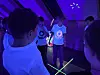 Das Licht geht aus und der Spaß fängt an. Das Schwarzlicht flackert auf – und plötzlich leuchtet es überall. Vor allem sind viele Kinder in weißen T-Shirts zu sehen.