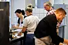 Gemeinsam bereitet die Gruppe Mahlzeiten zu – nicht nur für sich selbst. Auch die Künstlerinnen und Künstler, die später im „NygadeHuset“ auftreten, werden bewirtet. Danach sitzen alle zusammen, essen, kommen ins Gespräch – und gehen anschließend gemeinsam zum Konzert.