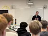 Schülerinnen und Schüler der achten Klassen der Deutschen Privatschule Apenrade hören Jan Breitenkamp Hansen bei der Vorstellung seines Berufes zu.