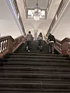 Roman Weiland, Linnea Peist Hansen und David Hoeck auf der breiten Treppe im Folketing