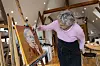 Vibeke Fonnesberg ist ein sehr aufgeräumter Mensch. Mitten in ihrem Atelier in der Stube steht eine sehr hohe Leiter. „Da hab ich wohl einen Tick: Ich liebe Leitern. Diese ist von einer Amateurmalerin. Ich habe noch mehr Leitern da hinten – fünf oder sechs Stück.“ Die zwölf Porträts der Königin hat sie in verschiedenen Farben geschaffen: „Ich konnte nicht nur eines machen.“
