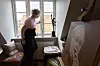 Vibeke Fonnesberg mit dem einen ihrer zwölf Porträts von Königin Margrethe.