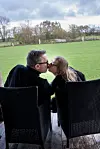 Ein Küsschen vor der großen Rasenfläche hinter dem Wohnhaus
