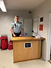 Hier werden in Gewahrsam genommene Personen von Asger Jeppesen und anderen im Team untersucht und für die Wartezellen vorbereitet. Gürtel und andere Gegenstände, mit denen Menschen sich selbst gefährden könnten, werden beispielsweise entfernt.