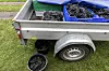 Mit dem Anhänger werden die Trauben zum Haus transportiert.