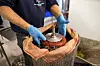 Zuerst testet Mona Clausen den Geruch der Weinbeeren.