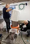 Frede erzählt mir ein interessantes und wichtiges Detail: Der Deckel des Tanks senkt sich automatisch auf den Stand, bis zu dem er gefüllt ist, sodass keine Luft in ihm zurückbleibt. „Immervoll“ hieße der Tank deswegen, erzählt er schmunzelnd. Er spricht Deutsch und ist sich der Doppeldeutigkeit durchaus bewusst.
