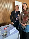 Schulleiterin Marion Petersen und Zuzüglerin Jennifer Ohm am Infostand des Kindercampus Lunden