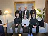 Das offizielle Foto mit Generalkonsulin Annette Lind auf dem Sofa in der Mitte sitzend, flankiert von Simon Møller (l.) und Jimmi Elley Graversen (r.). Stehend dahinter (v. l.): Michael Boas Pedersen, Dansk Industri, Erling Jensen, Dansk Metal, und Pia Lauridsen, Industriens Uddannelser