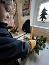 Vitus dekorierte eine Kerze mit frischem Tannengrün aus dem Wald.