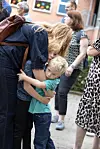 Der kleine Bub schaute hinauf zu den Kindern der Vorschulklasse an der Deutschen Schule Sonderburg.