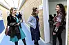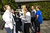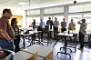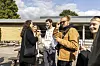Einige treffen schon vor dem Schulgebäude aufeinander. Das Wetter spielt mit.