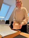 Nina Jebsen mit einem Tagebuch von Jef Blume
