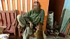 Während Beamte sein Haus durchsuchen, sitzt Christian K. (58) auf einem Stuhl, spielt mit seinem Hund.