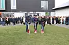 Direktor Carsten U. Eriksen, die stellvertretende Vorsitzende der Einrichtung, Solveig Andersen, und Schulsprecherin Mille Bysted Bossen (v. l.) beim ersten Spatenstich für eine Paddel-Bahn im März.