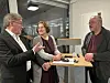 Therkel Stræde (links), Büchereidirektorin Claudia Knauer und Gershom Jessen