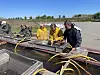 Mit einer Schaufel nehmen sie die Erde und entleeren sie in Siebe, die sich über einem großen Container mit Wasser befinden. Mit einem Schlauch wird die Erde nass gemacht und nach Fundstücken gesucht. Das Museum lädt seit 2023 Schulklassen zu solchen Aktionen ein. Im vergangenen Jahr kamen 18 Klassen. Dieses Jahr sind 23 aus verschiedenen Schulen angemeldet – die fünfte Klasse der LAS ist eine von ihnen.