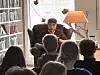 Lässig setzte er sich in den vor einem alten Sprossenfenster platzierten braunen Ledersessel. Dann erzählte er den 35 Mädchen und Jungen von seinem neuesten Buch in der Ralf-Tube-Reihe. Von Ralf, der unbedingt ein großer YouTube-Star werden möchte. Von Träumen, Freundschaft und vielen Stolpergefahren.