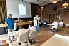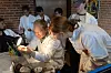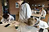 Deshalb ging es in der Aula der Deutschen Schule Sonderburg am Montagvormittag im Zuge der NiM-Woche (Naturwissenschaften im Mittelpunkt) auch recht wunderlich zu. Dort hatten die in weiße Kittel gekleideten Mädchen und Jungen Wasser im Mund. Das spuckten sie aus, rieben sich mit einem Wattestäbchen in der Wange und steckten das Stäbchen in einen kleinen Messzylinder. Alles dreimal.