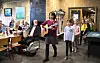 Der Kinderchor der zweiten und dritten Klasse schreitet in die Kaminhalle.
