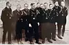 Der „Führerstab" der Jugendorganisation der NS-gelenkten deutschen Nordschleswiger (v. l.) Peter Klindt, Theo Hinrichs, Rudolf Grimm, Fritz Thier, Asmus W. Jürgensen, Bruno Thaysen, Jef Blume, Christoph Wohlenberg, Christian Juhl, Martensen präsentierte sich in „schneidigen" Uniformen dem Fotografen.