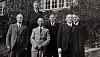 1942 ließ sich eine Spitzengruppe der NS-geprägten Minderheitenorganisationen in Gravenstein vor dem Haus des „Volksgruppenführers" Jens Möller (l.) fotografieren. Neben Möller (v. l.) Rudolf Stehr, Haboe Kardel, Peter Petersen, Peter Larsen und Peter Callesen