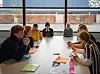 In jeweils drei kurzen Workshops tauschen sich die Gymnasiasten über die von den Jungen Spitzen ausgearbeiteten Fragestellungen aus. Hier diskutiert eine Gruppe Fragestellungen aus dem ersten Workshop.