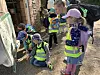 Die Kinder des deutschen Kindergartens schauten sich zusammen mit der Praktikantin Maja Czarnecki die Plakate vor dem neuen Gebäude an.