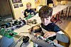 In einem anderen Klassenraum arbeiteten Noah, Raphael und Mikkel ganz konzentriert mit den Überresten eines demontierten Computers. „Wir bauen einen Raumflieger“, meinte Raphael.